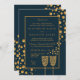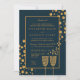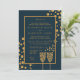 Convite Bolhas Douradas de Champanhe - Azul e Dourado - Ca