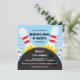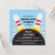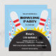 Convite de aniversário com uma bola de boliche derrubando os pinos da boliche. Fundo azul. Texto de convite personalizável. Para obter solicitações personalizadas ou ajuda para personalizar, use o link de contato de armazenamento acima.
