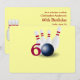 Você pode personalizar todo o texto deste convite de aniversário temático da 60ª boliche. Você pode mudar o texto e o número na frente e usar isso para um 40º, 50º, 70 ou outro aniversário. O design apresenta uma bola de boliche com pinos e a bola feita para parecer zero em 60 na frente. cores amarelas e vermelhas que também podem ser alteradas para suas cores preferenciais.