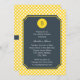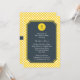 Design de bolinhas branca e amarela com monograma.A design apresenta bolinhas brancas em amarelo e um retângulo de cinza de carvão no meio. Convites de chá de panela.