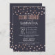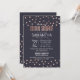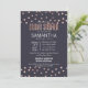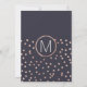 Bolinhas rosa de ouro elegantes, quentes e modernas imprimidas, e fundo azul marinho, Convites de chá de panela. Este design clássico e sofisticado é perfeito para a classe, na moda e a moda. Personalize com sua própria mensagem na frente e um monograma personalizado na parte de trás. Todas as impressão de fotos.