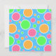bolinhas divertidas, em cores cor rosa, laranja e verde, estão em um fundo azul de goma de bolhas.