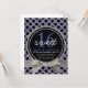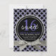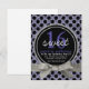 Convide amigos e família para a doce festa de aniversário de uma garota especial com este convite pontilhado de polka! impressão com padrão de bolinhas preto roxo e sólido, estilo brilhante, brilhante, realçado com fita e arco no estilo brilhante prateado bonito, e círculo com anel duplo com cinza e texto roxo anunciando um doce 16. Quatro áreas de texto personalizáveis para suas informações de participante. Vários outros produtos de coordenação disponíveis na loja para uma celebração de aniversário temática.