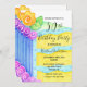 Convite Bolo Amarelo Azul Floral 50ª Festa de aniversário