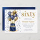 Convite Bolo Balão Azul Marinho de 60.º aniversário