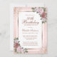 Convite de aniversário floral rosa dourado e rosa elegante com flores rosa e folhagens emoldurando os detalhes da festa de aniversário. Convite de aniversário floral rosa. Convite de aniversário rosa e dourado. Convite de aniversário rosa e dourado. Convite de aniversário rosa. Convite de aniversário rosa dourado. Personalize facilmente este modelo para qualquer festa de aniversário.