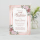 Convite Bolo de 50 anos Rosa Dourado Rosa Confete Floral