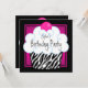 Convite de festa de aniversário de meninas com cupcake de zebra rosa quente e fofo para qualquer número. Este convite de festa de aniversário de zebra rosa colorido e adorável é facilmente personalizado para a sua festa ou evento, simplesmente escolhendo o botão laranja "Personalize!" para começar a adicionar os detalhes do seu evento, estilo de fonte, tamanho e cor da fonte, e texto. Por favor, note que todos os desenhos de convite que você encontrará na Zazzle são gráficos impressos em papel liso sem joias, laços, relevos, rebaixados ou peças ou partes adicionadas.