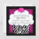 Convite Bolo de Aniversário com Meninas de Zebra Rosa Neon