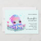 Convite de aniversário com imagem de um polvo fofo e feminino com uma flor na cabeça. Olhos grandes e brilhantes e um rosto amigável.