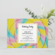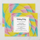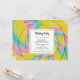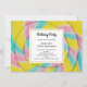 Um convite de aniversário com uma foto apetitosa. Uma foto macro de um pirulito. Cores pastéis em um padrão espiral. Azul rosa e amarelo.