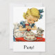 Menina e o Bolo - Um cartão de aniversário retrô dos anos 50 com uma menina decorando um bolo com seu gatinho.