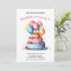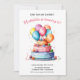 Celebre um dia especial com este Convite de Aniversário de Meninas com Bolo e Balões de Aquarela Arco-íris, apresentando um design alegre pintado à mão na frente e um padrão divertido de bolinhas no verso.