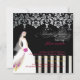 Bolo de casamento damasco preto e branco, silhueta de lustre e uma futura noiva em nosso convite de chá de panela moderno e tendência. Todos os elementos podem ser ajustados. Nós também temos diferentes cores de buquê de flores para você escolher. Igual ao bolo... podemos mudar a cor para você. Se você quiser uma cor diferente, simplesmente nos envie um pedido. Noiva elegante, romântica e delicada. Convites de casamento contemporâneo. Copyright © 2011 PixDezines.com™ e PixDezines™ na zazzle.com