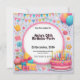Este modelo de convite de aniversário vibrante e brincalhão apresenta um design perfeito e colorido para as comemorações infantis. A ilustração mostra um grande bolo festivo de aniversário enfeitado com velas, balões brilhantes e uma variedade de decorações divertidas, incluindo uma coroa, cupcakes, presentes e banners de bunting. Os elementos brancos criam uma atmosfera alegre, fazer ideal para enviar convites para familiares e amigos por uma festa de aniversário memorável. Este convite personalizável e editável permite adicionar detalhes pessoais, criando uma manutenção exclusiva para qualquer evento de aniversário. Perfeito para uso digital ou imprimível, este design adiciona um toque de diversão e entusiasmo ao seu dia especial, garantindo uma celebração memorável para todos.