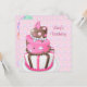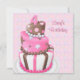 Convites de festa de aniversário de 4 anos de meninas com bolo marrom rosa de cabeça para baixo. Convites de festa de aniversário com bolinhas cor-de-rosa. Convites de festa de aniversário cor-de-rosa e marrom para meninas. Altere o 4 para qualquer número. Convites de festa de aniversário para meninas de qualquer idade. Convites de festa de aniversário de quarto aniversário para meninas.