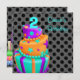 Convite Bolo preto roxo apresenta segundo aniversário para