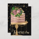 Convite Bolo Rosa Dourado Aniversário Preto Confete Brilho