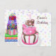 Convite Bolo Rosa Marrom Presente Meninas 1º Festa de Aniv