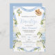 Convite para o batismo do menino floral azul em espanhol, convidación de Bautizo para niño con Flores verdes