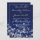 Convites para casamento temáticos de inverno sobre fundo azul marinho com texto alterável, quando o casal hospeda suas famílias
