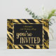 Floral Zebra com folha de ouro Festa de aniversário Black Stripe. Bolsa mensageifesta de aniversario elegante Dourada Negra, Ornamentado Elegante Classy All Occasion Party convida Modelo