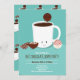 Um convite para uma festa divertida para uma bomba de chocolate quente e uma festa de cacau quente. Este convite apresenta uma caneca sorridente de cacau quente com uma variedade de bombas de chocolate quente à sua volta, num fundo de chá. Pronto para receber os convites? Basta adicionar suas informações, adicionar este convite ao seu carrinho e depois desfrutar desta festa deliciosa. Bomba de chocolate quente Convite de festas de cacau doce Comida de doce | ©Melissa Patton — Artista/Ilustrator