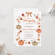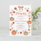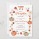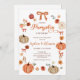 Celebre sua abóbora no caminho com este adorável convite de chá de fraldas para uma garota. A design apresenta um arranjo encantador de abóboras em laranja macio e laranja queimada, acentuado com vários arcos doces para uma coquete e um aspecto de queda de bolso. Um convite sazonal perfeito para dar as boas vindas à sua filha.