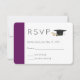 Um RSVP na moda para uma festa de formatura / evento. O lado esquerdo tem uma borda roxa real. Um boné de formatura e um diploma no topo. Design simples e moderna.