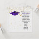 Placa de mortalha roxa em dourado em fundo de textura branca macia para um convite de festa de formatura. Todo o texto/nome é editável.