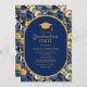 Convite à festa de formatura de marinho azul e ouro, floral e boné de formatura, para a classe de 2024 ou qualquer ano. O texto é personalizável, então faça dele seu. Entre em contato comigo para obter assistência com a personalização ou para solicitar produtos correspondentes.