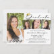 Convite moderno de festa de formatura preto e branco com 4 fotos e tipografia de script manuscrito com o título FORMANDO acentuado com um falso boné de formatura de ouro metálico. Todas as cores podem ser alteradas para acentuar suas fotos ou criar um esquema de cores. ASSISTÊNCIA: Para obter ajuda sobre modificação ou personalização do design, transferência do design para outro produto ou, se você quiser coordenar itens, entre em contato com o designer ANTES DE PEDIR por meio do Zazzle Chat ou makeitaboutyoustore@gmail.com.