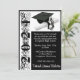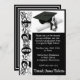 5" por 7", tema "Convite para graduação, Boné e Diploma, com trabalho de arte de "Ano", em preto, branco e prata, com fundo preto. O verso do convite inclui o nome do formando, Pode ser personalizado com as suas próprias imagens, trabalho de arte, etc.