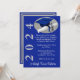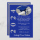 5" por 7", tema "Convite para graduação, Boné e Diploma, com "Ano da Classe", em Real Azul, sobre um fundo de aparência de níquel escovado. O verso do convite inclui o nome do formando. NOTA: o metal escovado é um impressão, não um metal real. Mensagem MineByDesign e podemos ajudá-lo a personalizar qualquer design!