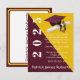Tema "Boné e Diploma", com "Ano de Classe" em Maroon e Dourado com sotaques Brancos. O verso do convite inclui o nome do formando. Mensagem MineByDesign para obter ajuda com este design ou solicitações personalizadas!