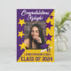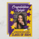 Convite para graduação de 5" por 7", com design de cor na diagonal da escola, com fotografia de formando, boné e trabalho de arte de diploma, e estrelas à frente. Inverter recursos convite à festa de formatura. Você pode personalizar o convite no Zazzle ou na mensagem MineByDesign para obter assistência ou pedidos personalizados.