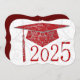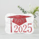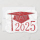 Designs florais sobre boné de formatura, fundo e ano. Boné de formatura vermelho sobre fundo branco. O fundo tem um fundo vermelho com letras brancas para os convites de festa de formatura.