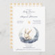 Na moda e fofo, quem não ama coelhinhos? Este design é perfeito para o chá de fraldas que vai ser a futura mãe. Ele apresenta um belo coelhinho em uma lua nublada com estrelas amarelas. A parte traseira apresenta uma cor correspondente e um padrão de estrela. TODO o texto é personalizável para ajustado das necessidades de planejamento de seu partido. Parabéns à nova mãe.