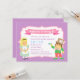 Convide seus convidados para uma festa de chá de aniversário em Wonderland com esta bela Alice no convite de festas temático Wonderland! Alice em uma banda de cabelo, vestido azul e pinaforro branco que está segurando em uma garrafa com uma etiqueta "Beba-me". o Chapéu que está vestindo um chapéu de cima que diz "Neste estilo 10/6", arco de bolinhas vermelha, jaqueta verde e calças vermelhas, com uma xícara de chá em sua mão. Fundo roxo com pontos dispostos em quadrados diagonais. Colorida e adorável, este convite é excelente para aniversários que amam a história Alice no País das Maravilhas!