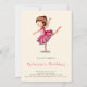 Um simples e bonito convite de aniversário de bailarina com uma ilustração de uma garota com um tutu rosa dançando. Ilustrada e projetada por Patricia Alvarez.