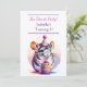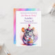 Um adorável convites de festas de aniversários de menina chinesa, rosa e púrpura. Chinchilla branca em rosa, roxo, lacre e laranja e muitas cores divertidas segurando cupcakes e balões. Se sua filha gosta de chinchila, então são perfeitos para ela! Basta adicionar seu convite de aniversário na área de personalização.