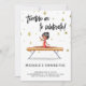Celebre o dia especial do seu ginasta com nosso adorável convite de aniversário de ginástica! Apresentando uma ilustração encantadora de uma menina negra graciosamente enraizada em um feixe de equilíbrio, esse convite captura o espírito de diversão e atlética. O elegante leotard cor-de-rosa e a tipografia branca da escrita negra, que lê "Tumble on to celebrar", define o tom perfeito para um encontro alegre. Com um fundo branco pristine adornado com estrelas de ouro simuladas, e um sofisticado fundo preto com mais sofisticados sotaques de ouro, este convite certamente impressionará seus convidados e criará entusiasmo para a próxima celebração. Torne o aniversário do seu filho inesquecível com esta maravilhosa design! Ilustrada e projetada por Patricia Alvarez.