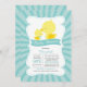 Convite para chá de fraldas de garoto de pato moderno com um pato-de-mãe fofo com seu filhote de pato colocado em um fundo retroradial de faixa azul com faixa popular e tipografia moderna. Sacudir o nosso chá de fraldas doce, para ver a correspondência para um toque especial extra. Visite nosso compro para ver nossa grande seleção de convites para chuveiros para bebês de na moda contemporâneos