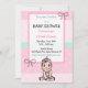 Bonita Mão desenhou bebê, rosa e lacrimejante, bolinhas e arcos, convites para Baby Shower.