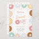 Convide seus amigos e entes queridos enquanto celebra o primeiro aniversário de sua filhinha com este belo e doce convite no tema rosquinhas pastel e salsichas. Personalize os detalhes de seu próprio gosto.