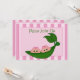 Convite para Chás de fraldas de Ervilha Verde. Os gêmeos estão sentados em uma cápsula de ervilha e estão vestindo arcos cor-de-rosa. O convite de chá de fraldas tem um fundo de faixa rosa. Personalize com os detalhes do seu partido.