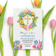 © 2023 Socialite Designs & LICENCORS. Bonito convite para Páscoas com uma cruz de ouro, uma estrutura de tulipas e ovos de Páscoa. Um convite maravilhoso para convidar a família e os amigos para um almoço de Páscoa, caçada de ovos para as crianças, ou janto de Páscoas.