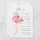 Convite de Chá de fraldas Flamingo cor-de-rosa desenhado por totkorner para uma mãe especial - para comemorar. Personalize com suas informações ou clique em "Clique para personalizar mais" para editar estilos de fonte, tamanho e cores. Visite www.totkorner.com para mais informações!