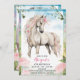 Convite Bonito Cavalo Branco e Flores Rosa Foto de Anivers