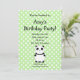 5" x 7" convite com teste padrão de bolinhas branco do verde bonito da panda para uma festa de aniversário temático da panda convidam